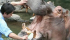 日动物园给河马刷牙 宣传牙齿卫生