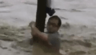 实拍:洪水瞬间淹路 男子抱树待救