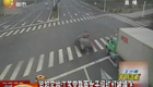 监控实拍两女子闯红灯被撞飞