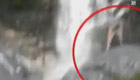 空中实拍山泉变瀑布冲击苏花公路