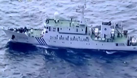 实拍日本舰机骚扰中国海监船