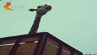 长颈鹿现身 网友调侃过桥洞缩脖子