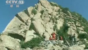 实拍学生攀岩被困悬崖消防紧急营救