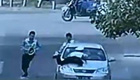 实拍:疯狂偷车贼开车顶交警狂奔1公里